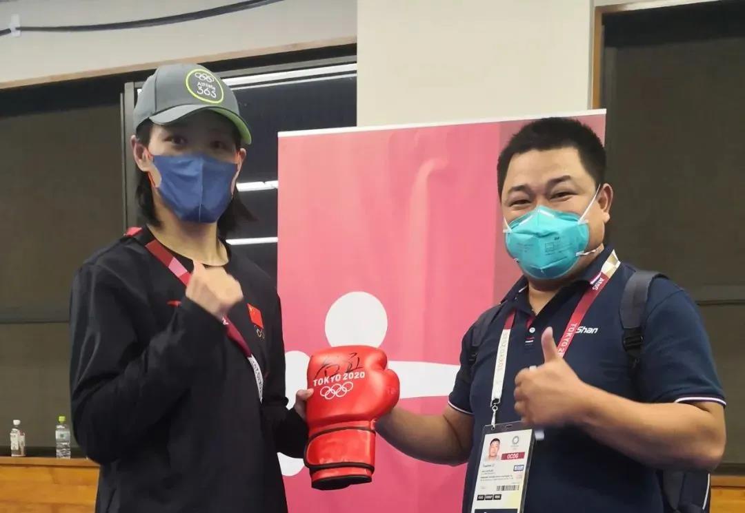 东京奥运会女子拳击69公斤级银牌获得者——中国运动员谷红签名好博体育拳击手套