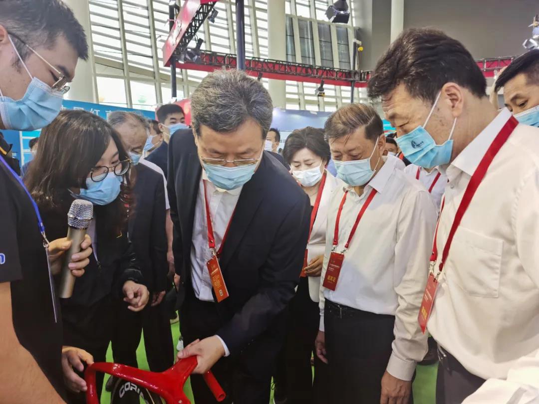国家体育总局体育器材装备中心副主任王平,临沂市委书记王安德,临沂市委副书记、市长任刚,临沂体育局局长刘艳芬等领导莅临好博体育展位参观