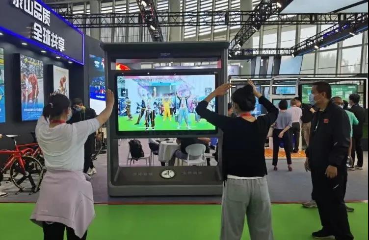针对全民健身,好博体育带来了“智能健身驿站”、“AI 武术大屏”等智能产品。凭借“高颜值”、“趣体验”,“武术大屏”前聚集了现场热情的观众一展身手,“切磋武艺”。“好博体育AI 武术大屏”是一款应用 AR 增强现实技术与人工智能技术相结合来重构传统武术动作体验的智能应用产品,通过人工智能 AI 大屏结合肢体 识别与肢体捕捉算法,将专业武术老师的武术动作进行数字化展示,引导大众参与武术动作教习体验,并对体验者给出相应动作的正确反馈,更有打分竞技比赛趣味,是一款可娱乐可教习的智能武术互动系统。
