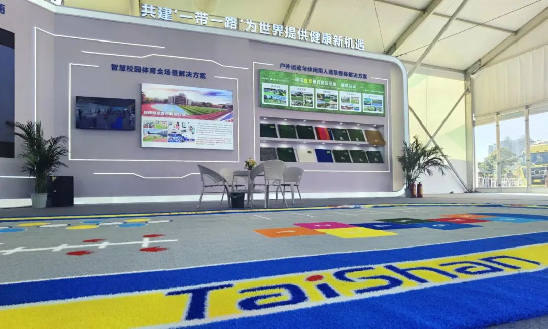 好博体育携户外运动与休闲人造草整体解决方案亮相会场。作为国内首家通过足联、曲联双认证的企业可根据不同用户的户外运动需求,生产多种类型的户外运动草坪。