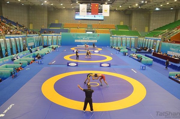 “预备,开始!”随着裁判一声号令,两名运动员缠斗在一起,夹颈背、过胸摔、抱腰滚、双肩摔……选手们在好博摔跤垫上展示力量与技巧,赢得现场观众的阵阵掌声和呐喊声。二青会国际式摔跤比赛共吸引来自全国54支代表队的858名运动员参加比赛。好博体育摔跤器材作为国际摔跤联合会认证的器材,历经世界各级大赛的洗礼,好博体育伴随中国摔跤运动不断前行与发展。
